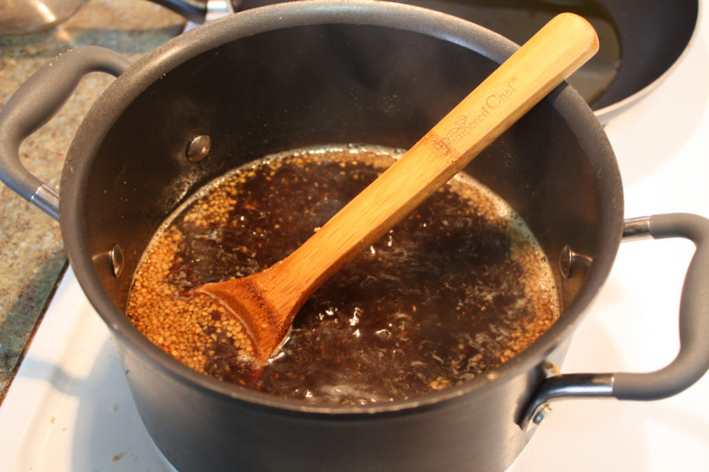 Raise the heat to medium-high, and stir 4 minutes, or until the sugar has dissolved and the sauce boils and slightly thickens.